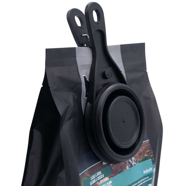 ein Clip, um den Futterbeutel nach Gebrauch wieder dicht zu verschließen. So bleibt das Futter länger frisch und wird nicht unnötig verschüttet.