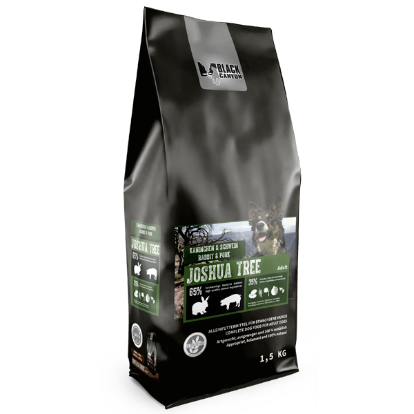 BLACK CANYON Joshua Tree enthält 65 % tierische Zutaten, die in dieser Rezeptur ganz besonders lecker zusammengestellt sind: 30 % reines, frisches Kaninchenfleisch zusammen mit getrocknetem Schweinefleisch, Hühnerfett und getrocknetem Fisch werden zu einer leckeren und gesunden Mahlzeit. Neben Fleisch in bester Qualität ist in Joshua Tree noch mehr Gutes aus der Natur enthalten: Heilpflanzen, wie die Hagebutte, helfen Ihrem Hund gesund zu bleiben, denn Hagebuttenextrakt enthält viel Vitamin C und stärkt das Immunsystem. Kleine Mengen an Kartoffeln und Erbsen liefern Ballaststoffe ohne den Darm zu belasten.