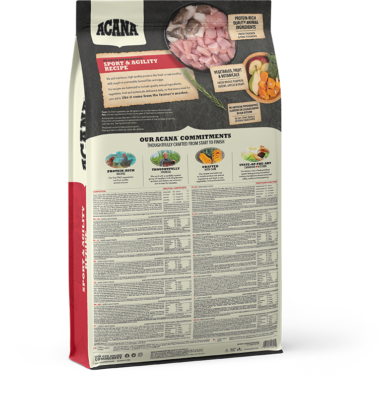 ACANA SPORT & AGILITY soddisfa i requisiti della FEDIAF per i cani di tutte le età, ad eccezione dei cani di grossa taglia in crescita.